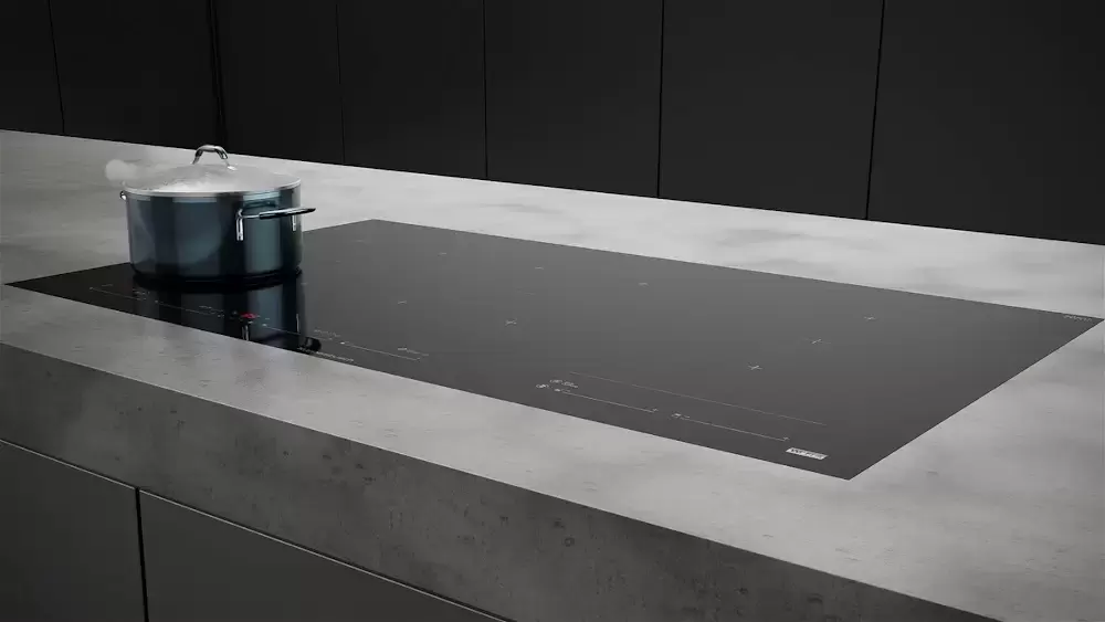 Индукционная варочная панель Kuppersbusch KI 9880.1 SR. Особенностью данной модели является наличие шести конфорок и функции FlexZone.